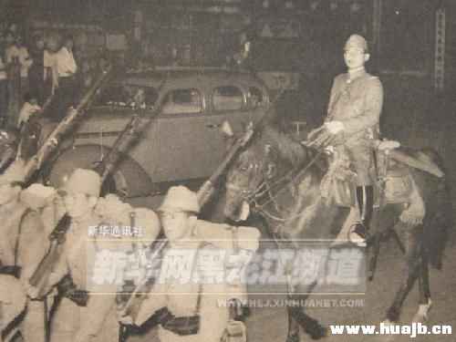 原图片说明:“经过某市区街头向前线急行军的某部队