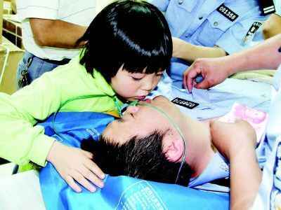 痛失爱妻,心力交瘁的唐勇军昏厥在地,六岁的女儿亲吻爸爸满是泪水的脸庞
