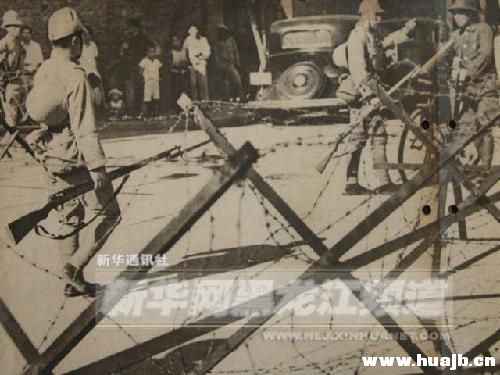 原图片说明:“为预防万一而架设铁丝网的某日本租界。”气焰万丈的侵略者从来都是色厉内荏。